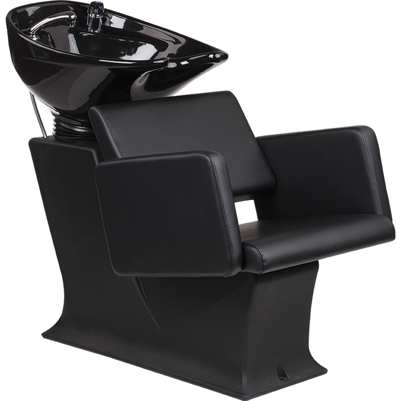 Opis produktu: Lea to model o prostych kształtach. Jego wymiary sprawiają, ze jest to uniwersalny model do salonu damskiego jak i męskiego. Tapicerka fotela w kolorze czarnym. Obudowa myjni wykonana jest z tworzywa w kolorze czarnym, posiada dożywotnią gwarancję. Głęboka porcelanowa misa regulowana na wahaczu, ułatwi pracę każdego fryzjera. Tu misa dostępna w kolorze czarnym. Armatura pokryta jest chromem i posiada pięcioletnią gwarancję. Do kompletu polecamy fotel Lea. W sprzedaży posiadamy ten sam model w kolorze szarym z białą misą. Wymiary: wysokość do siedziska: 46 cm, wysokość do górnej misy: 96 cm, szerokość z podłokietnikami: 62 cm, szerokość siedziska: 51 cm, głębokość siedziska: 41 cm, długość całkowita: 120 cm.