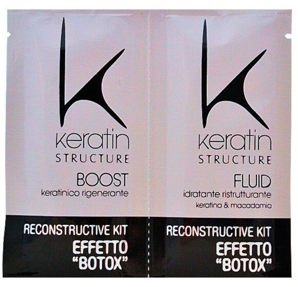 Kuracja keratynowa do rekonstrukcji włosów w zestawie to regenerujący zabieg do włosów z efektem botoksu, który przywróci kształt i objętość włosów. Keratyna i wyciąg z orzechów macadamia nawilża oraz restrukturyzuje włosy podkreśla piękno włosów, naprawia uszkodzone włosy, wzmacnia suche włosy. Rezultaty są widoczne już po pierwszym użyciu. Dzięki małemu opakowaniu produktu bezpośrednio i łatwo się stosuje. Pakiet zawiera dwie saszetki, które przed użyciem są mieszane ze sobą:
