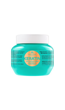 Opis produktu: Kallos maska do włosów zawierająca keratynę oraz proteiny mleczne, przeznaczona do włosów suchych, łamiących się i poddawanych zabiegom chemicznym. Posiada cechy regenerujące zniszczone włosy, odbudowuje naturalną gładką strukturę włosa poprzez wypełnianie ubytków. Przede wszystkim odżywia i nawilża suche włosy, regeneruje łamiące się włókna włosa. Po jej użyciu włosy lepiej i łatwiej się rozczesują, są miękkie w dotyku i lśniące, lepiej się układają. Pojemność 275ml.
